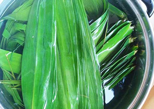 煮粽葉時可加入少量食用油,粽葉有一層油包出來的粽子不會粘在粽葉上。