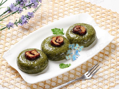 下面介紹一種艾葉為食材的艾葉紅棗糯米餅,艾葉餅有的地區(qū)也稱為艾葉粑粑。剛做好的艾葉餅顏色是淺墨綠色,放置一會兒就會變成深墨綠色,吃起來清香、軟糯、微甜,色香味俱全。