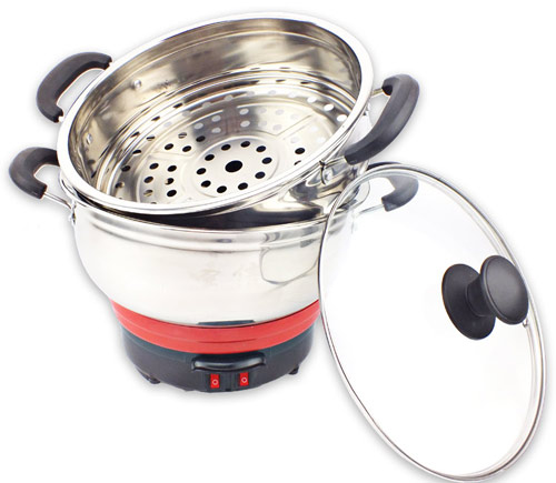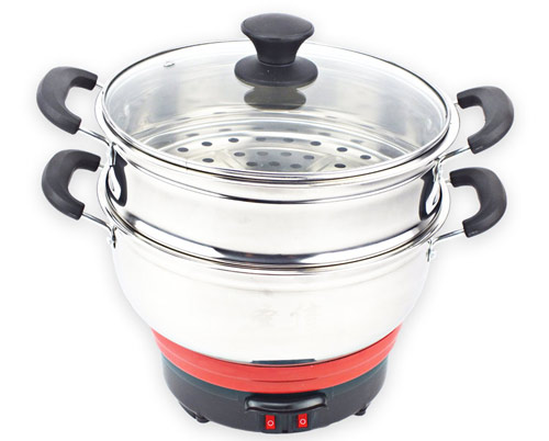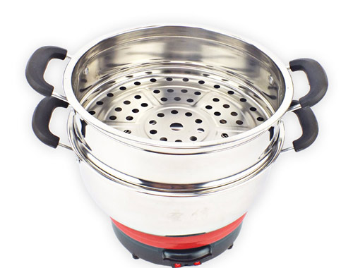 24/26CM小電熱鍋,24CM 26CM兩種規(guī)格,內(nèi)有兩根加熱管獨(dú)立加熱,雙檔控制,內(nèi)部設(shè)有溫控器,可有效防止干燒導(dǎo)致電熱鍋的損壞,配置不銹鋼一體蒸籠,更結(jié)實(shí)更美觀。